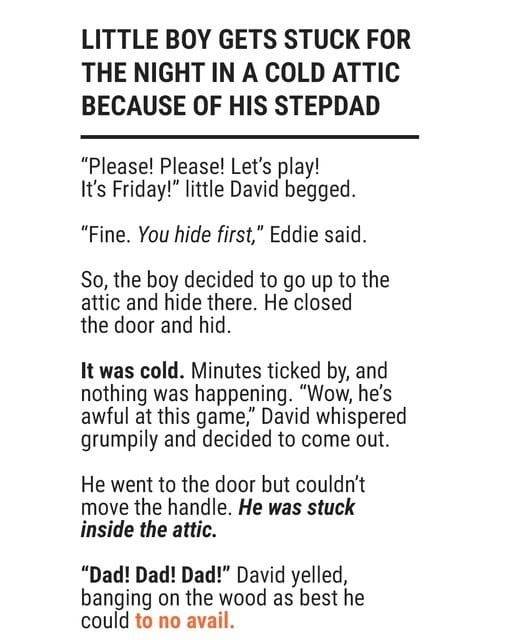 When I look back on that night, it still feels like a strange dream half exciting, half unsettling. My stepfather and I had been trying to get along for months, ever since he moved into our home. We weren’t enemies, but we weren’t close either. So when he suggested we play hide and seek after dinner, I was shocked.