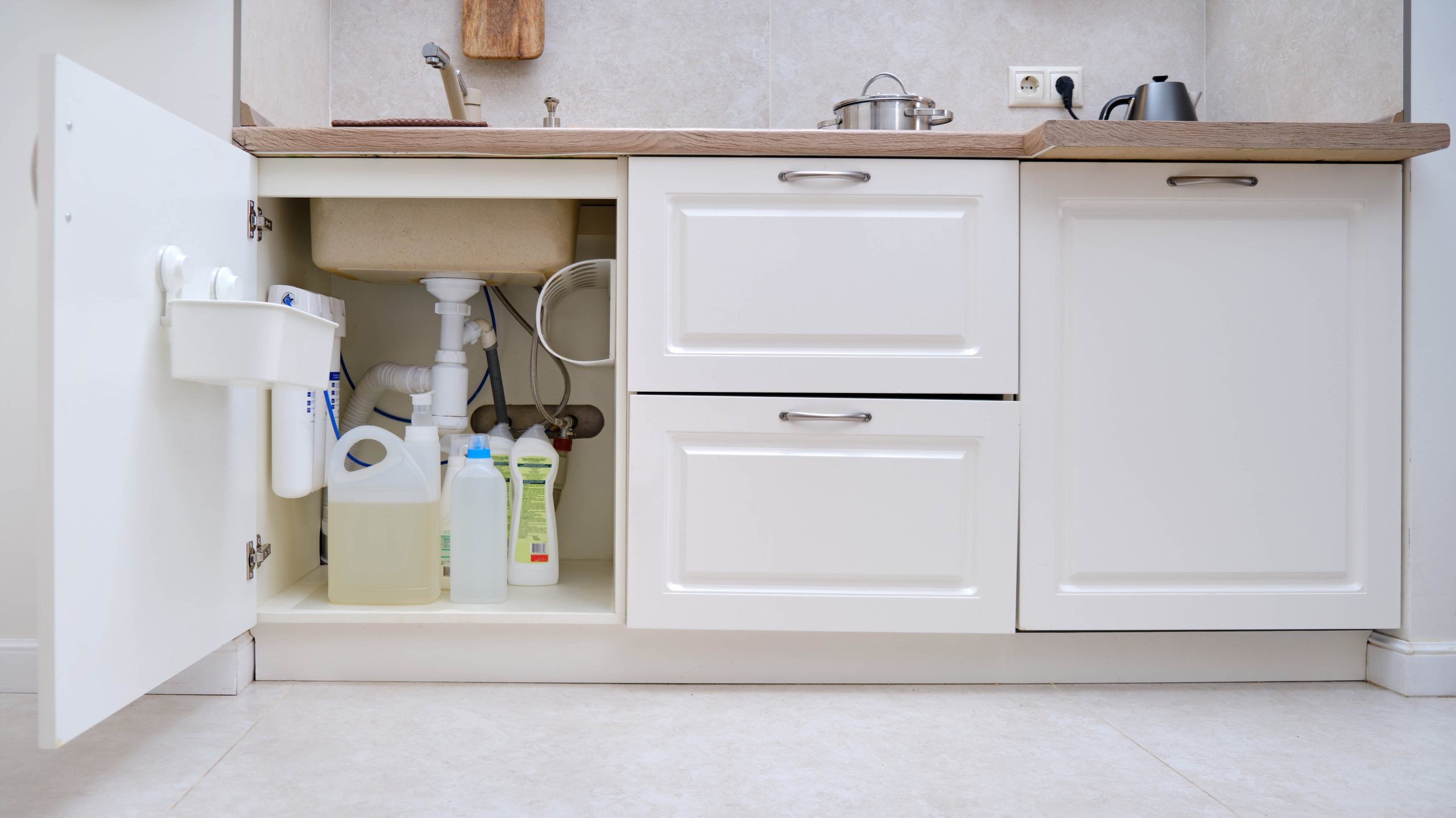 One of the biggest risks under the sink is the presence of strong cleaning chemicals. Products like drain cleaners, oven cleaners, bleach, and concentrated detergents can emit fumes — especially in a warm, enclosed space like under the sink. These fumes can: