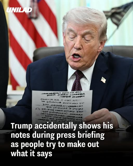 Donald Trump once again found himself at the center of online attention after a recent White House press briefing took an unexpected turn. During the event, cameras appeared to catch the president holding handwritten notes that were clearly visible enough for viewers to start trying to figure out exactly what was written on them. What may have seemed like a small moment quickly turned into a major talking point online, with social media users zooming in on screenshots and debating what the notes actually said.